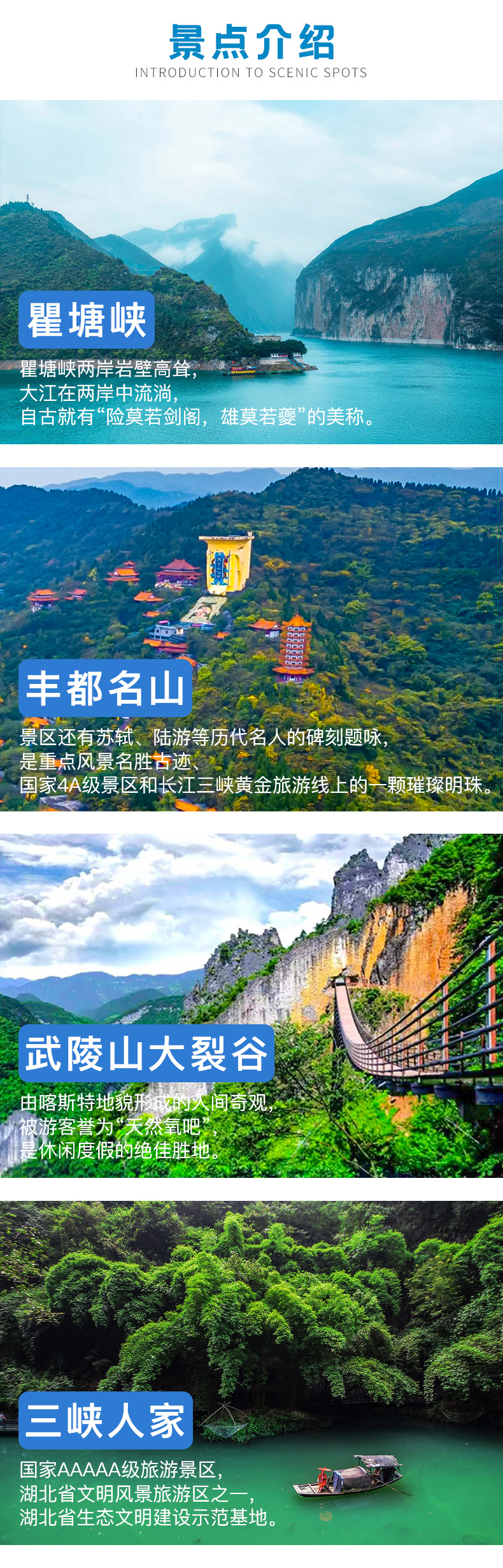 2、门票:含丰都名山、神农溪、三峡大坝首道大门票。