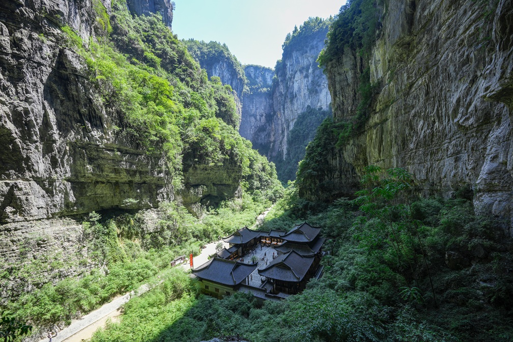 【天生三桥】景区以其壮丽而独特的“三硚夹两坑”景观称奇于世,坑与坑之间以桥洞相望,桥与桥之间以坑相连,规模宏大,气势磅礴,瑰丽壮观。